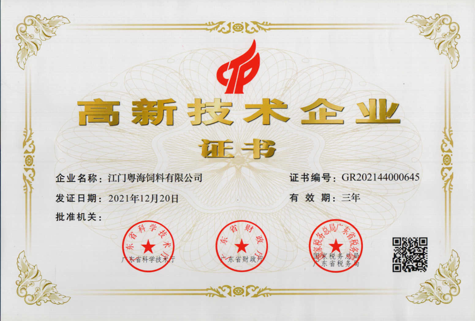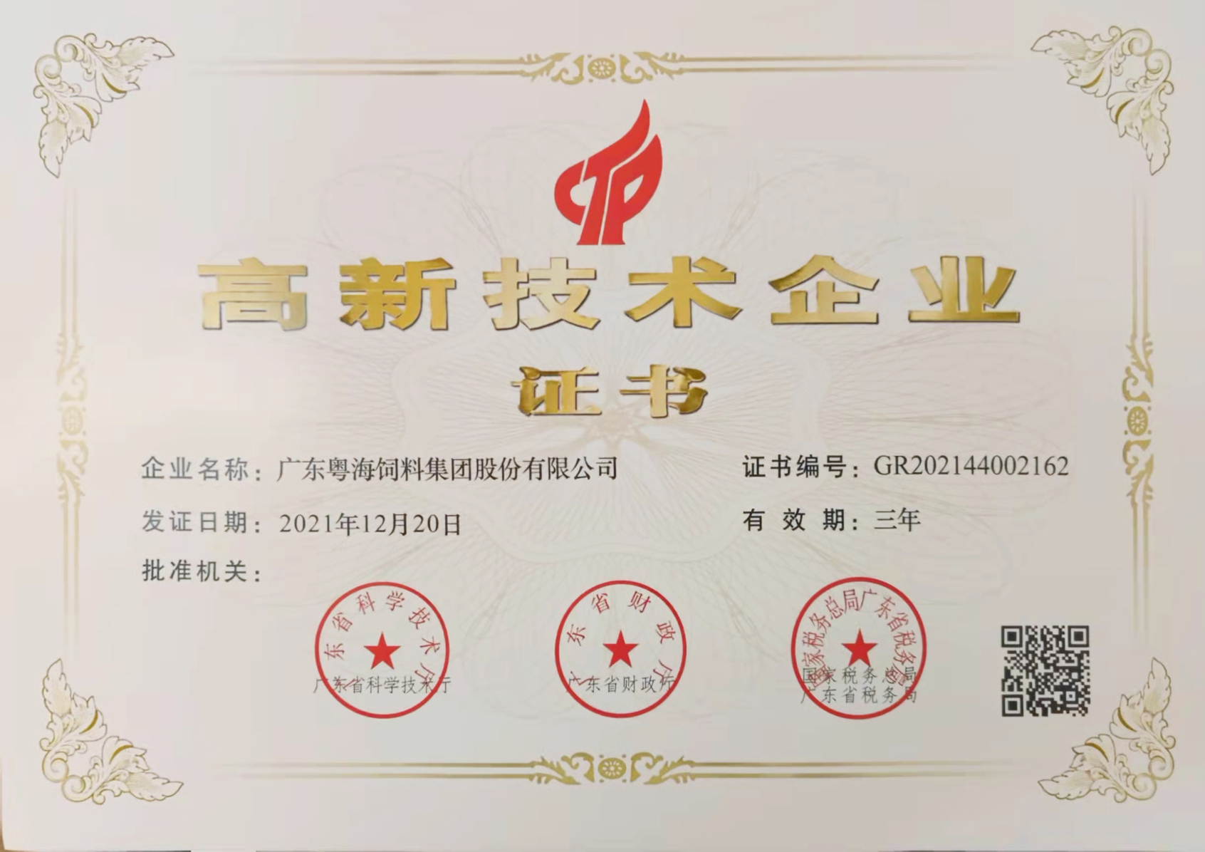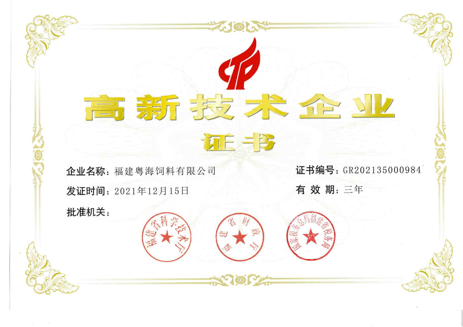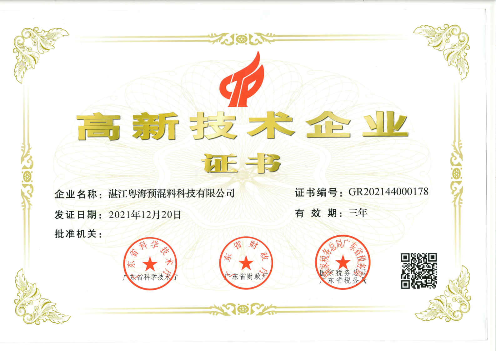 高新技术企业证书-预混料
