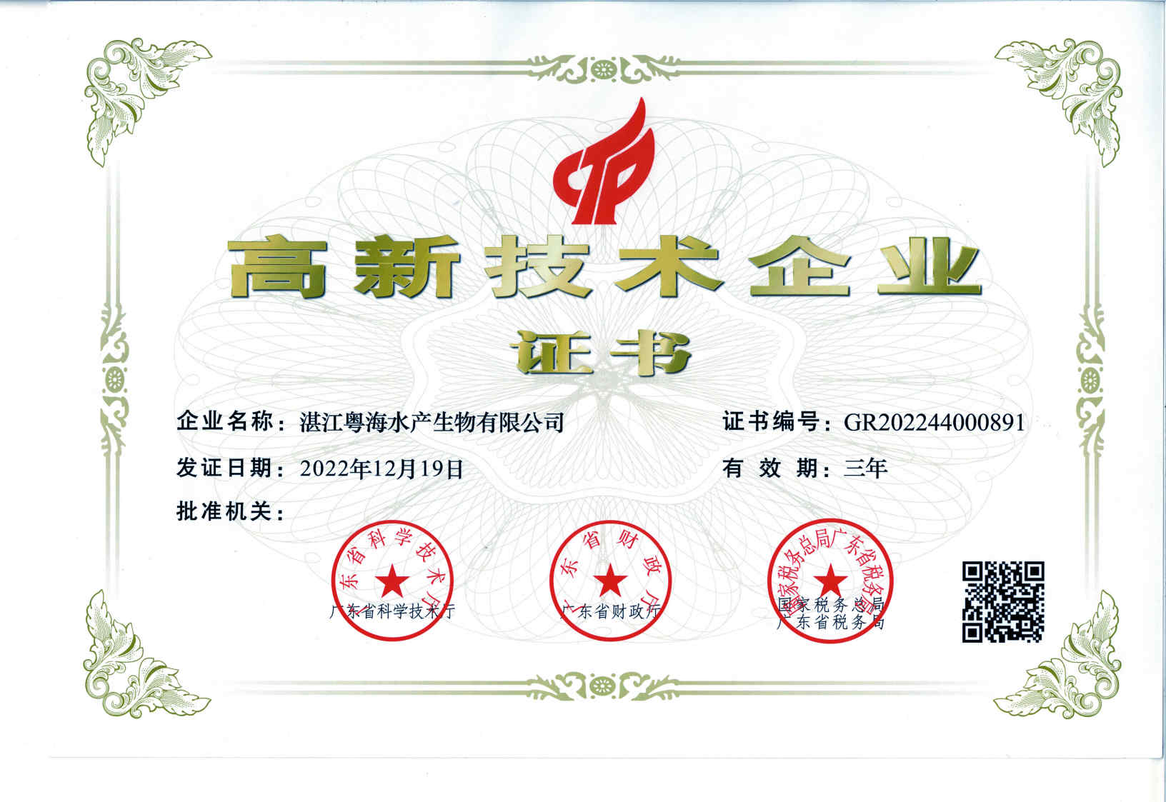 高新技术企业证书-广东WQT.COM